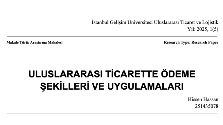 Makale: ULUSLARARASI TİCARETTE ÖDEME ŞEKİLLERİ VE UYGULAMARI
